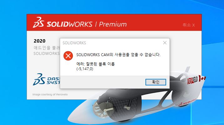 1.솔리드 웍스 설치후 오류 뜨는거때문에 문의드립니다.