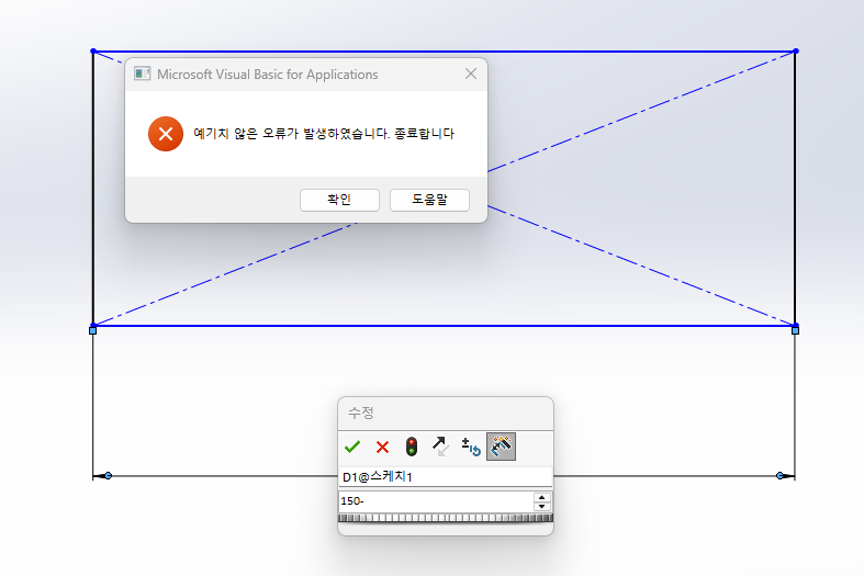그리고 치수에 수식을 넣으려고하면 자꾸 오류창이 뜹니다.