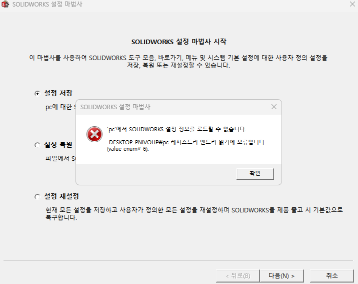 해당 문제는 레지스트리 읽기 오류로 발생 할 수 있습니다.